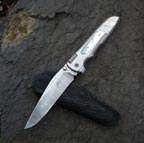 Top operated lock mecanism with titanium liners anodised in decorative grooves . Handle is siberian mammoth ivory, blade is ATS-34 steel. 6.5 inches closed |